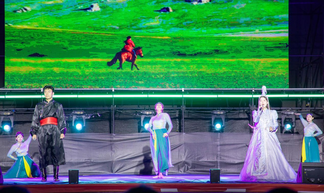 今年正值中国人民抗日战争暨世界反法西斯战争胜利80周年,本篇章以艺术形式致敬历史,传递奋斗精神。全体军训教官合唱《我爱你中国》,深情歌声唤起新生军训记忆;退伍学生代表与国旗班学生演绎《军礼》,表达对军人的崇高敬意;歌伴舞《鸿雁》勾勒出辽阔草原的壮美画卷;男高音歌唱家南洋老师演唱《草原上升起不落的太阳》,歌声悠远动人;校石榴花民族舞蹈团则以《千里万里》舞出民族风情,展现山河锦绣。