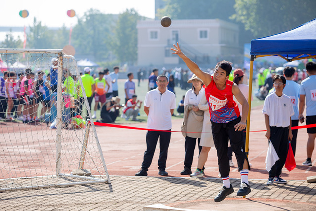 场上,运动健儿们全力以赴、奋勇拼搏:短跑选手俯身起跑、全力冲刺,目光坚定;跳远运动员助跑、腾跃、落地,动作连贯有力;接力赛中,红白相间的接力棒传递着信任与默契,声声呐喊凝聚着集体的力量。他们在奔跑、跳跃、投掷中生动诠释“更高、更快、更强”的奥林匹克精神,展现出新时代大学生蓬勃向上的青春风采。