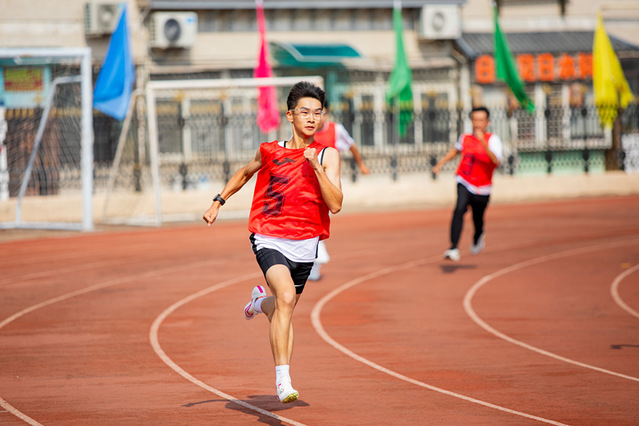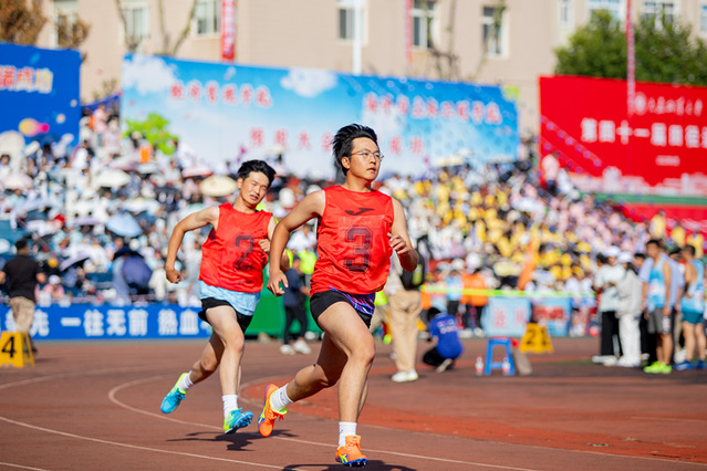 场上,运动健儿们全力以赴、奋勇拼搏:短跑选手俯身起跑、全力冲刺,目光坚定;跳远运动员助跑、腾跃、落地,动作连贯有力;接力赛中,红白相间的接力棒传递着信任与默契,声声呐喊凝聚着集体的力量。他们在奔跑、跳跃、投掷中生动诠释“更高、更快、更强”的奥林匹克精神,展现出新时代大学生蓬勃向上的青春风采。