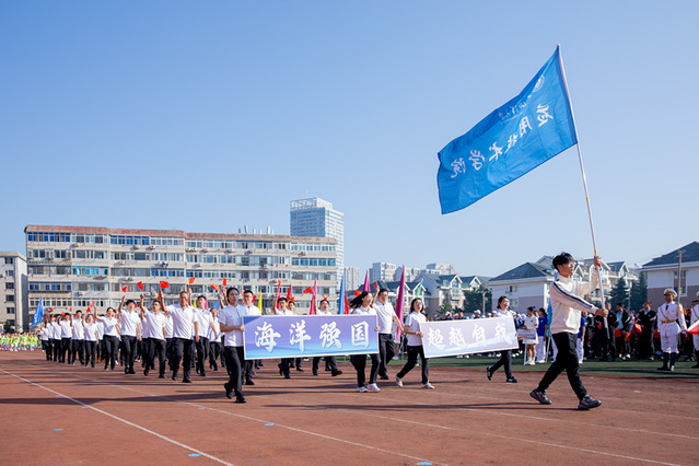 伴随着雄壮的《运动员进行曲》,国旗班擎旗入场,身姿挺拔、步伐铿锵;彩旗方队手持七彩旗帜,翻飞如虹、绚烂夺目;裁判员方队神情庄重、步履沉稳,展现公正严谨之风。各学院、各单位运动员代表步伐整齐、口号响亮,展现出大海大人昂扬向上的精神风貌。看台上掌声雷动,欢呼不断,现场气氛热烈高涨。