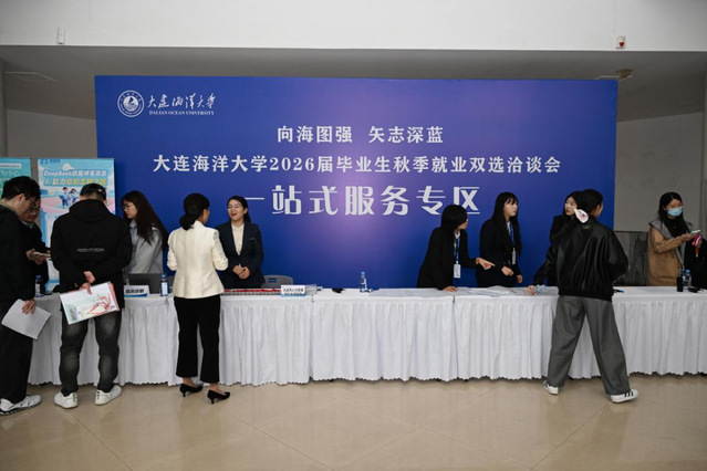 向海图强,矢志深蓝。10月17日,我校在黑石礁校区北院办公楼举行2026届毕业生秋季就业双选洽谈会。校长杜明、校党委副书记李智军到洽谈会现场与多家用人单位和毕业生亲切交流。