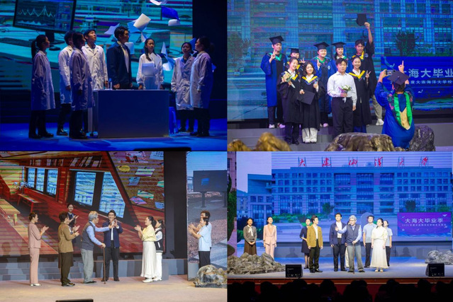 10月15日—17日,我校原创话剧《蔚蓝之路》在黑石礁校区俱乐部首演并顺利落幕。校领导衣庆焘、杜明、李智军、卢昆,共青团大连市委员会副书记于越,大连航运职业技术学院校领导吴鹏、马旭东、张伟、李岩,大连戏剧家协会原副主席张枚,我校离退休教师代表、科级以上干部、辅导员、近三年新入职教师、黑石礁附属小学的教师代表和大连航运职业技术学院师生代表共计3000余人一起观看了演出。话剧中的三位原型大连水产学院原副院长雷衍之教授,我校优秀研究生校友、盘锦光合蟹业有限公司董事长李晓东,研发中心主任孙娜应邀出席。