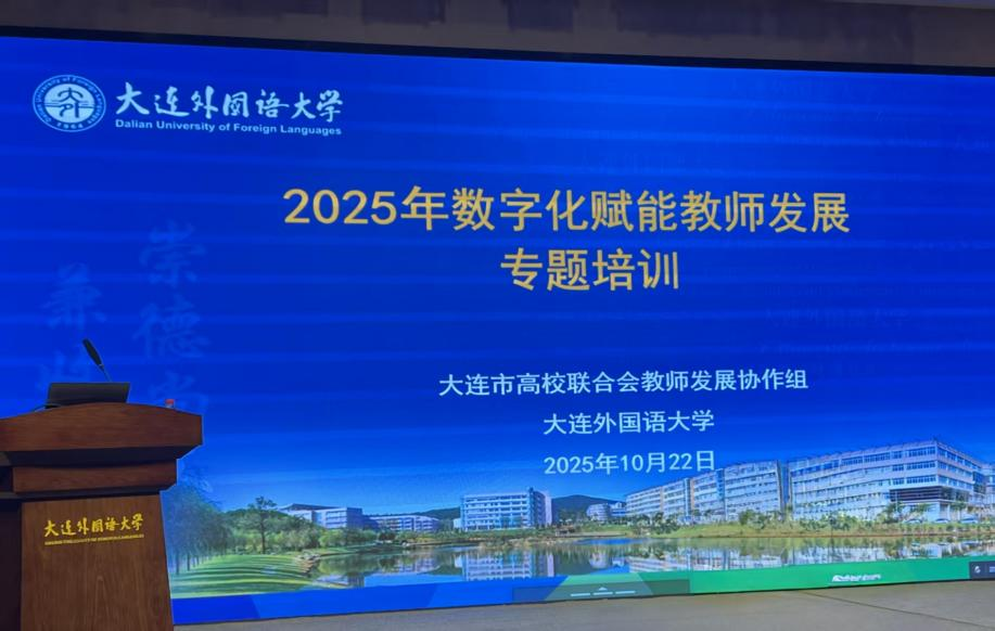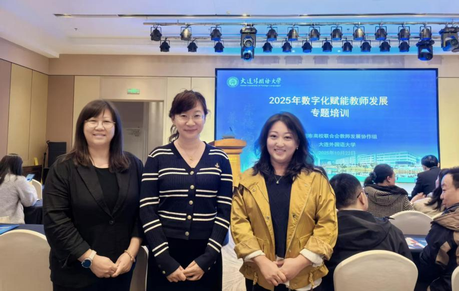 10月22日,2025年度大连市高校联合会教师发展协作组活动“数字化赋能教师发展专题培训”在大连外国语大学举行。活动聚焦数字化赋能教师发展主题,来自协作组26所成员单位的相关负责人及骨干教师共120余人参与。作为协作组成员单位,我校教师发展中心主任刘洋,副主任邵婧怡、周贺一行应邀参加培训及相关活动。