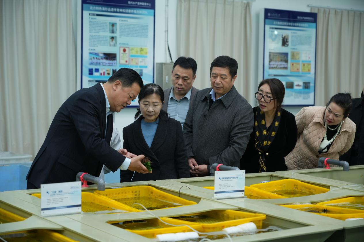 调研期间,董晶一行先后参观了我校海洋强国广场、黑石礁湾·鱼园、辽宁省贝类良种繁育工程技术研究中心、北方海洋数据应用工程中心及现代水产苗种繁育中心,详细了解了我校在服务区域海洋经济、海水养殖贝类繁育技术研发、海洋数据资源共享、智慧海洋建设、水产种质资源保护与良种创新等方面科研进展与成果转化情况。
