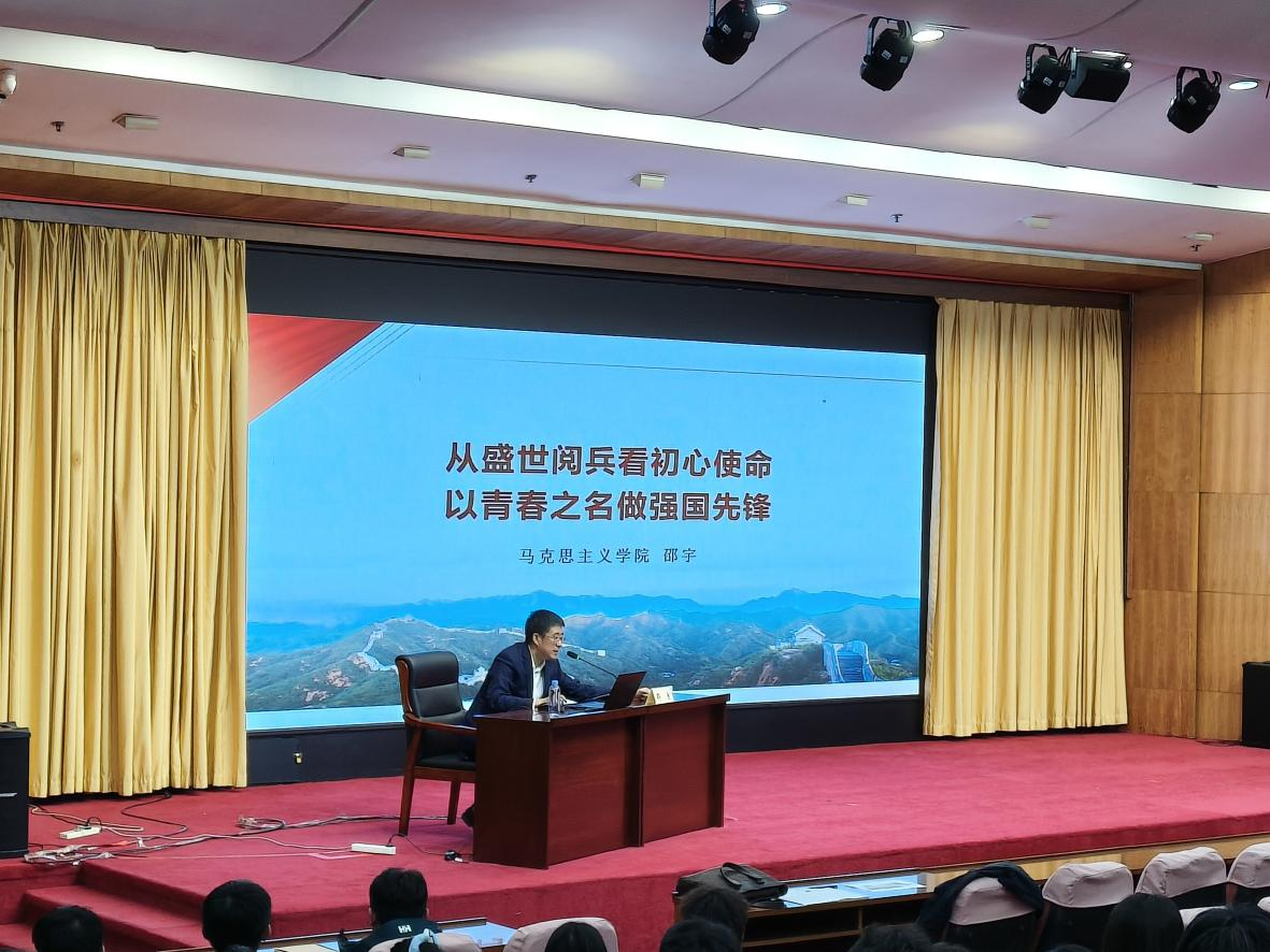 会议明确了本期培训班的具体安排,航海与船舶工程学院2023级本科生殷汇代表全体参训学员发言。开班仪式后,全体学员进行了第一堂党课的学习,马克思主义学院邵宇老师作了题为“从盛世阅兵看初心使命 以青春之名做强国先锋”的主题报告。