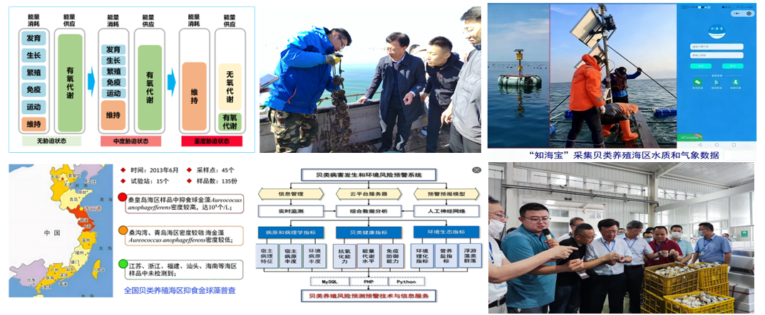 该项目聚焦贝类养殖中的环境胁迫关键问题,揭示了贝类对高温、干露和病原感染等胁迫的响应特征,明确了神经内分泌免疫系统的调节作用。项目解析了环境胁迫与贝类健康及大规模死亡的耦合关系,构建了基于养殖环境与生物健康的风险预警预报技术体系。截至目前,项目已发表论文 430余篇,获授权发明专利22件,成果在全国贝类主养区示范推广,发布预警预报130余次,取得了显著的经济、社会和生态效益。