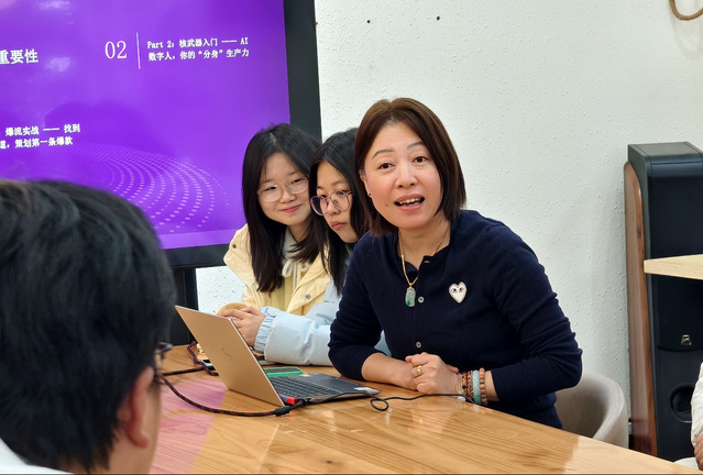 活动过程中,专业讲师结合案例,讲解如何运用AI工具打造自我IP,进行情绪疏导,帮助学生掌握实用的压力管理技巧。学生们围绕算法伦理、技术落地难点等问题与讲师展开热烈探讨,现场互动频繁、气氛活跃,兼具科技感与趣味性。