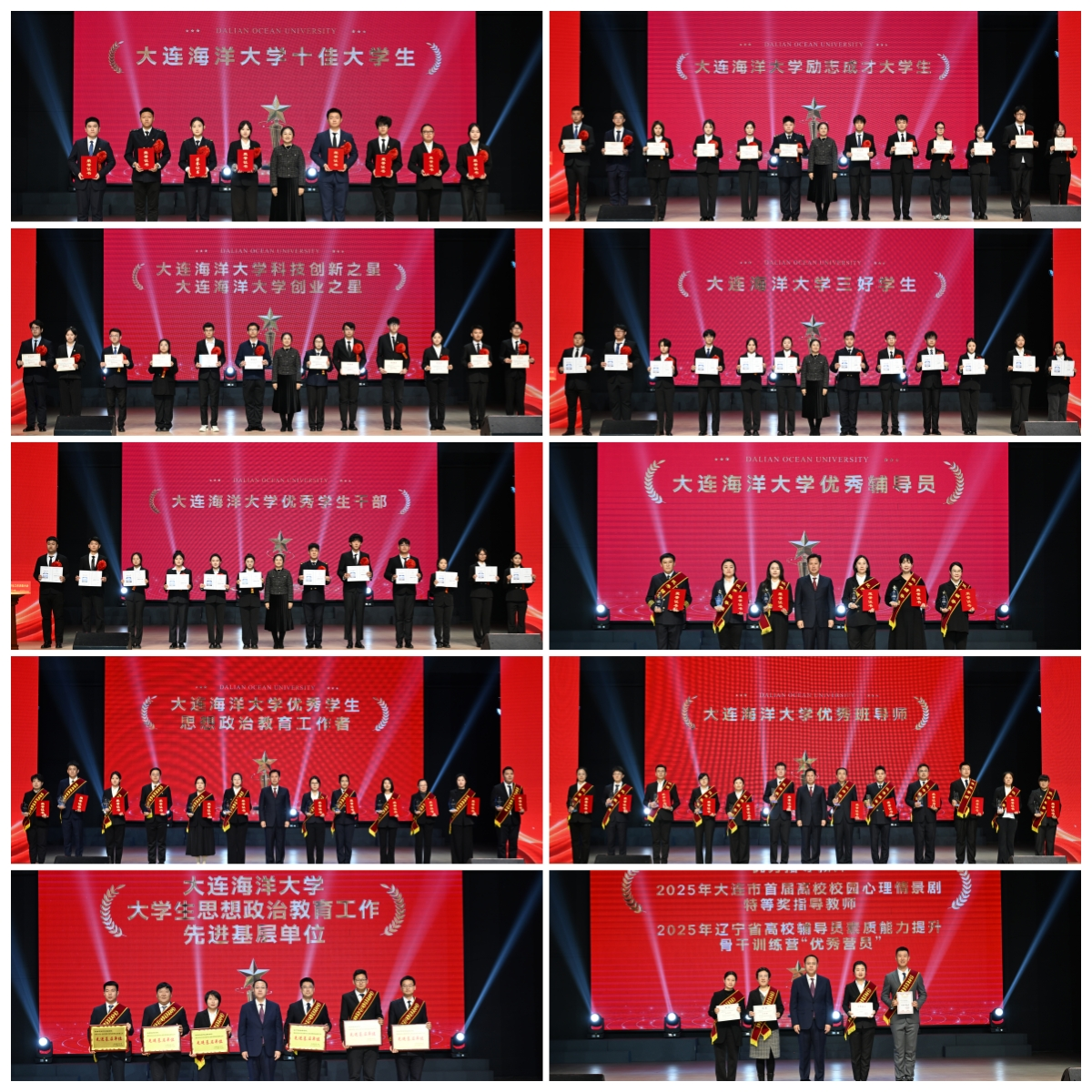 12月19日,我校在黑石礁校区俱乐部隆重召开2025年学生工作大会暨学生和学生工作表彰大会。校党委书记衣庆焘出席大会并讲话,校长杜明、校党委副书记李智军、校长助理卢昆,党委常委彭杰、邓立志、周东旭出席大会。各职能部门负责人,各学院领导班子成员,全体专职辅导员,班导师代表,获奖师生代表及在校学生代表共同参会。大会由信息工程学院辅导员宋子奇和食品科学与工程学院2025级新生马爱迪主持。