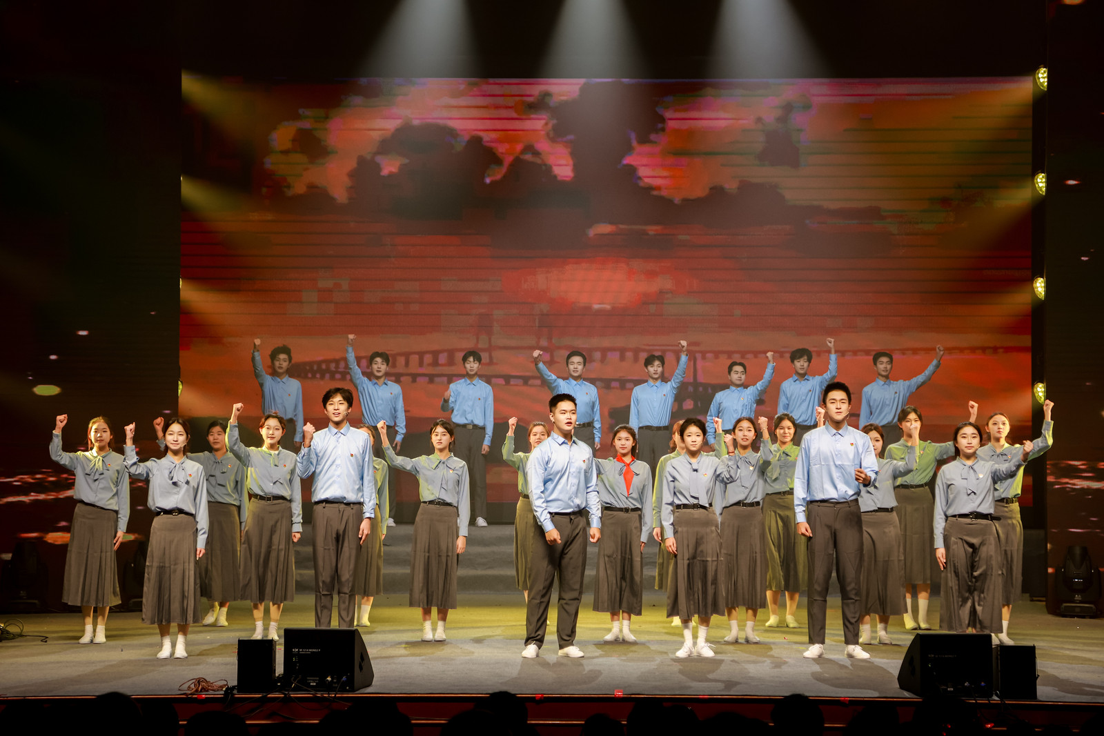 汇演尾声,与会嘉宾及校领导登台与全体演职人员、师生共同唱响《团结就是力量》,嘹亮歌声回荡全场,凝聚起同心筑梦的磅礴力量,演出在热烈掌声与真挚祝福中圆满落下帷幕。