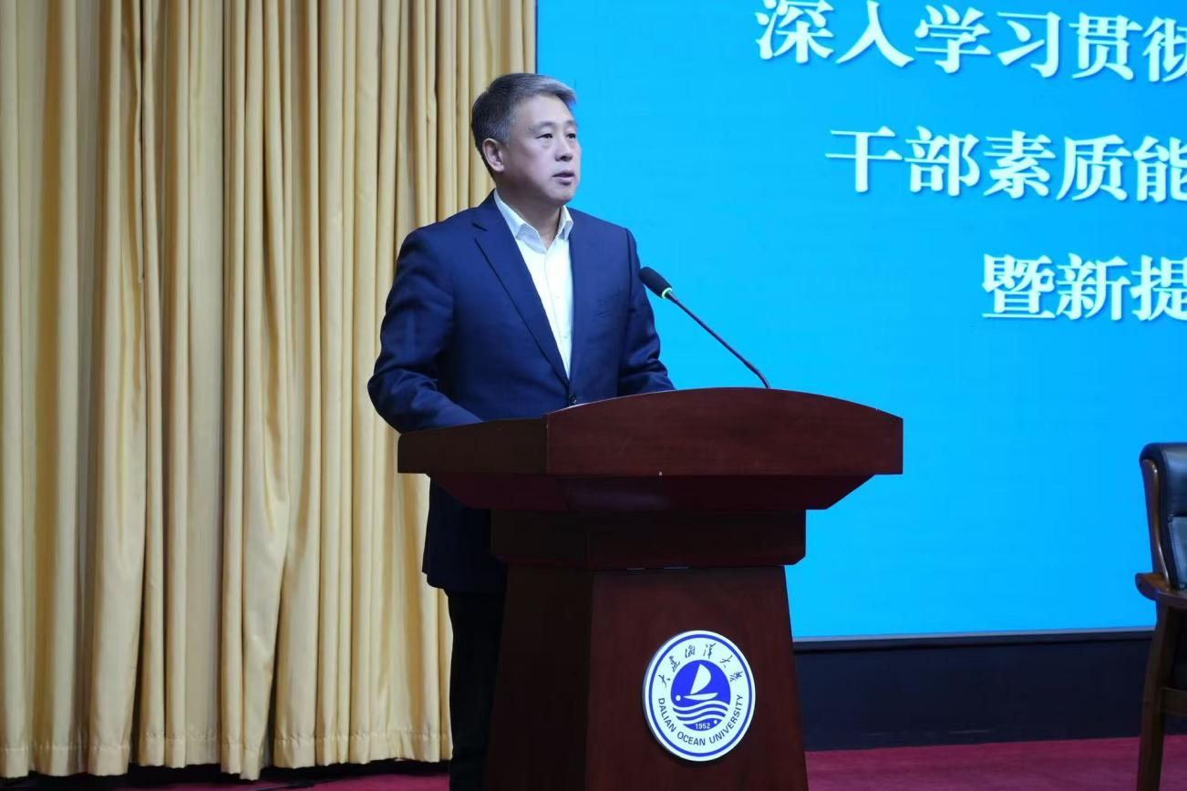 开班仪式上,衣庆焘以《深入学习贯彻党的二十届四中全会精神凝心聚力担当作为在服务海洋强国战略中彰显使命担当》为主题作专题辅导报告。衣庆焘指出,本次培训班是切实加强学校干部队伍建设,全面提升干部队伍政治能力、领导水平和履职本领的集中培训会。全体党员干部要深刻认识党的二十届四中全会的重大意义,在深学细悟中提升思想境界,在理论联系实际中感悟真理力量,切实增强贯彻落实全会精神的政治自觉和行动自觉。要进一步增强责任意识,勇于实干担当,积极顺应时代、拥抱时代,不断提升政治能力、改革攻坚能力、狠抓落实能力和沟通协调能力,在服务海洋强国、海洋强省和区域经济发展中贡献大连海洋大学的智慧与力量。要持续加强作风建设,提升党性修养,严守政治纪律和政治规矩,强化责任意识,筑牢风险防线,纵深推进全面从严治党,以优良党风校风为学校发展提供坚强保证。
