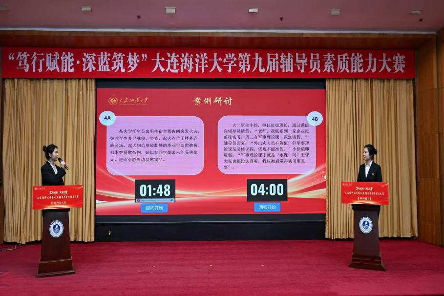 1月14日下午,我校在图书馆报告厅举办“笃行赋能·深蓝筑梦”第九届辅导员素质能力大赛。校党委书记衣庆焘、校长杜明、校党委副书记李智军,校党委常委彭杰、邓立志、周东旭出席大赛。相关职能部门负责人、各学院党政负责人、全体专职辅导员、班导师代表及校外观摩团到场观摩。比赛由校团委副书记张云鹏和海洋科技与环境学院辅导员刘欣宇主持。