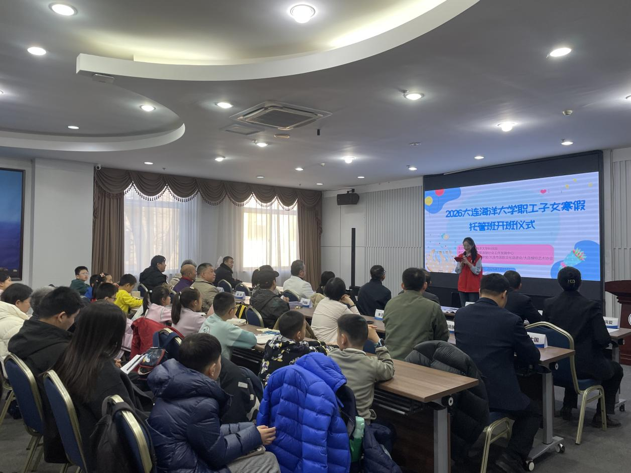 1月15日,我校2026年职工子女寒假托管班开班仪式在图书馆多功能厅举行。大连市爱源慧社会工作发展中心代表、公益讲师团队、校工会、科技园有限公司负责人及教职工子女代表共同出席开班仪式。