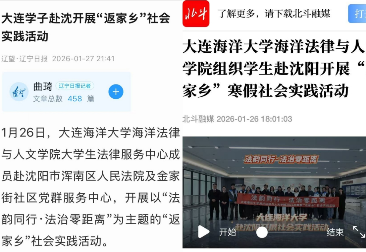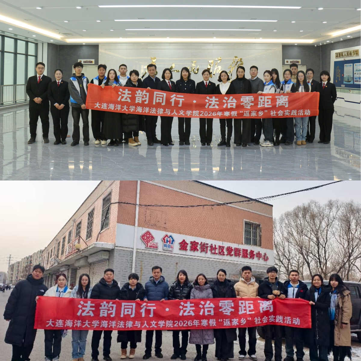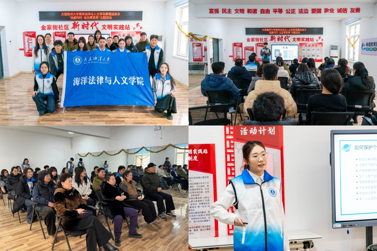 为引导青年学生在社会实践中受教育、长才干、作贡献,1月26日,我校师生前往沈阳市浑南区人民法院及金家街社区党群服务中心,开展以“法韵同行·法治零距离”为主题的“返家乡”社会实践活动。本次活动由海洋法律与人文学院承办。校团委副书记(主持工作)刘冰冰、组织专干龙玥,海洋法律与人文学院党委书记高雪梅、院长王黎黎、副书记邓云清、团委书记杨毅及辅导员张恒毅参加活动。