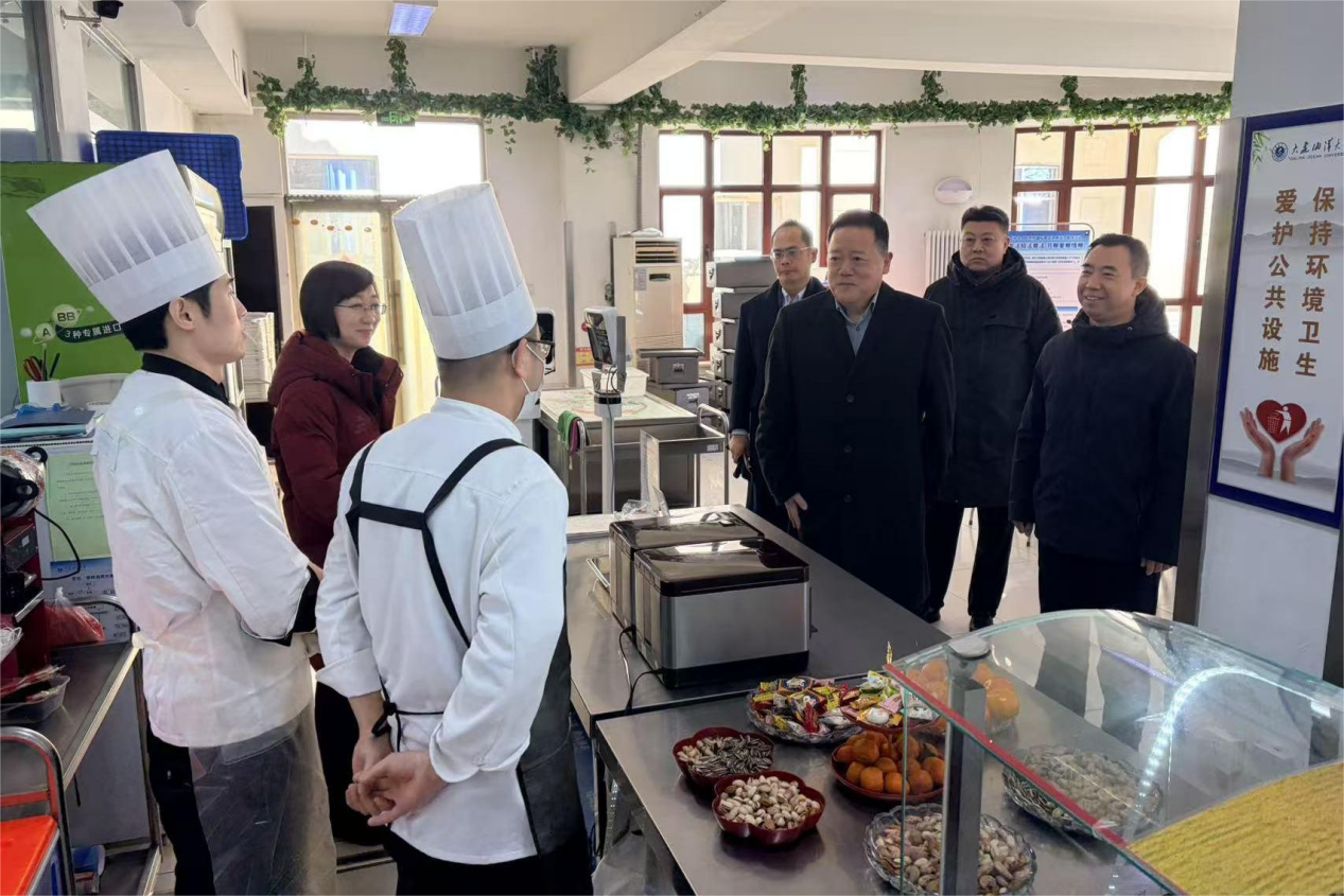 在黑石礁校区与大黑石校区,衣庆焘、杜明一行深入校园保卫、水电暖运维、食堂服务、物业保障等工作一线,与在岗教职工亲切交谈,详细了解大家的工作生活、值班值守和后勤保障等情况,并为教职工们送上新春祝福与学校精心准备的慰问品。